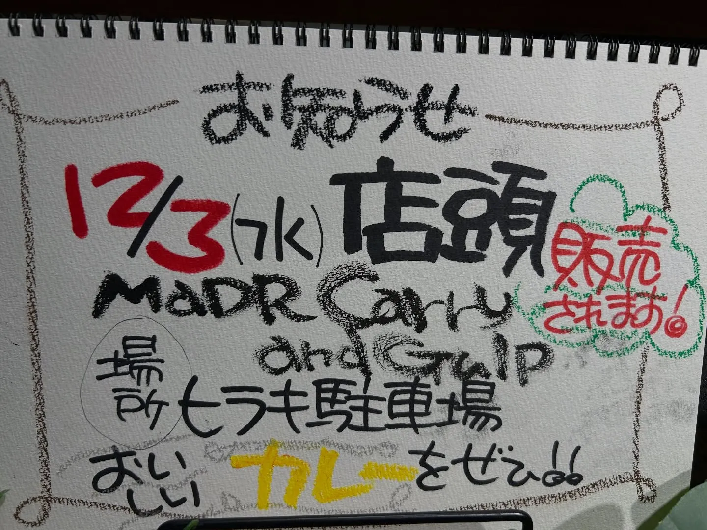 明日ー ヒラキさんにて ハンバーガーとカレー2種ハンバイ します! ぜひ遊び来て下さい!